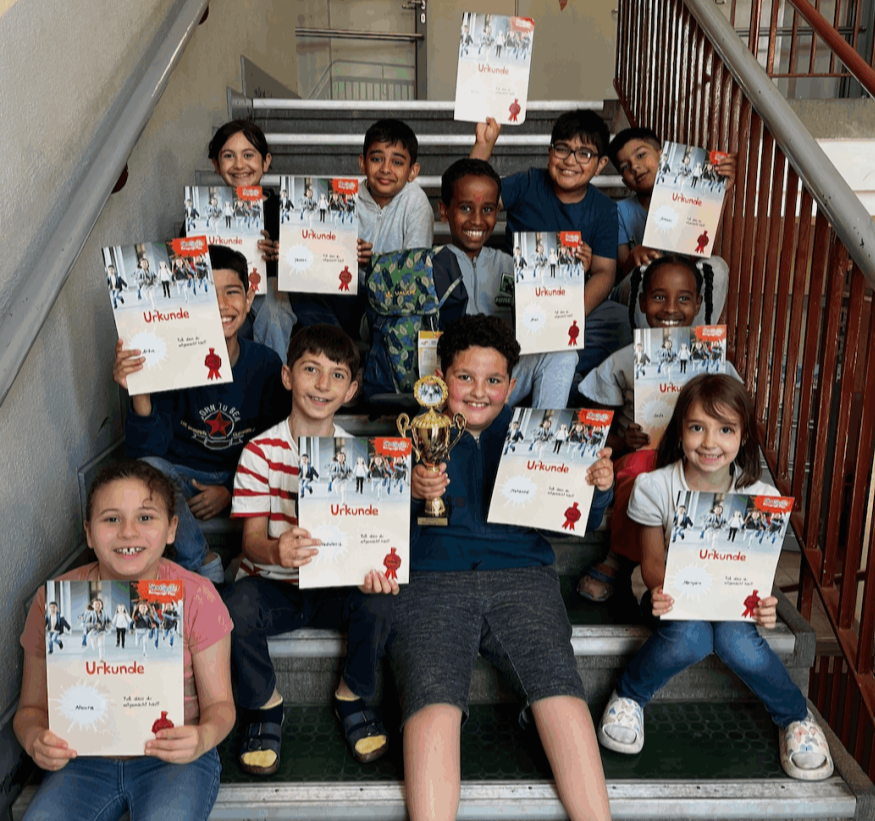 Als Belohnung für ihre vorbildliche Teilnahme erhielten alle Kinder, die 20 Unterschriften sammelten, eine Urkunde, die ihre Leistung und ihr Engagement würdigte. Zusätzlich durften sie an einem Gewinnspiel teilnehmen, bei dem tolle Preise warteten. Am Haupstandort gab es für die beiden ausgelosten Gewinner*innen Decathlon-Gutscheine im Wert von jeweils 20€, am Teilstandort wurde ein Vaude-Rucksack verlost.